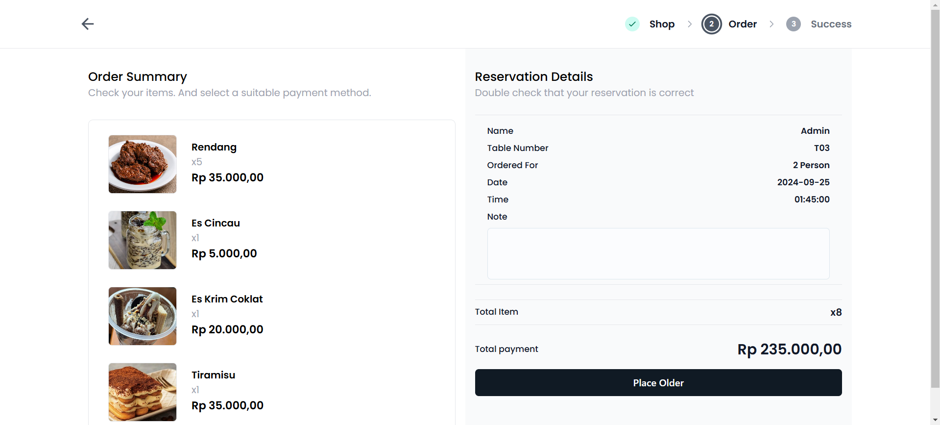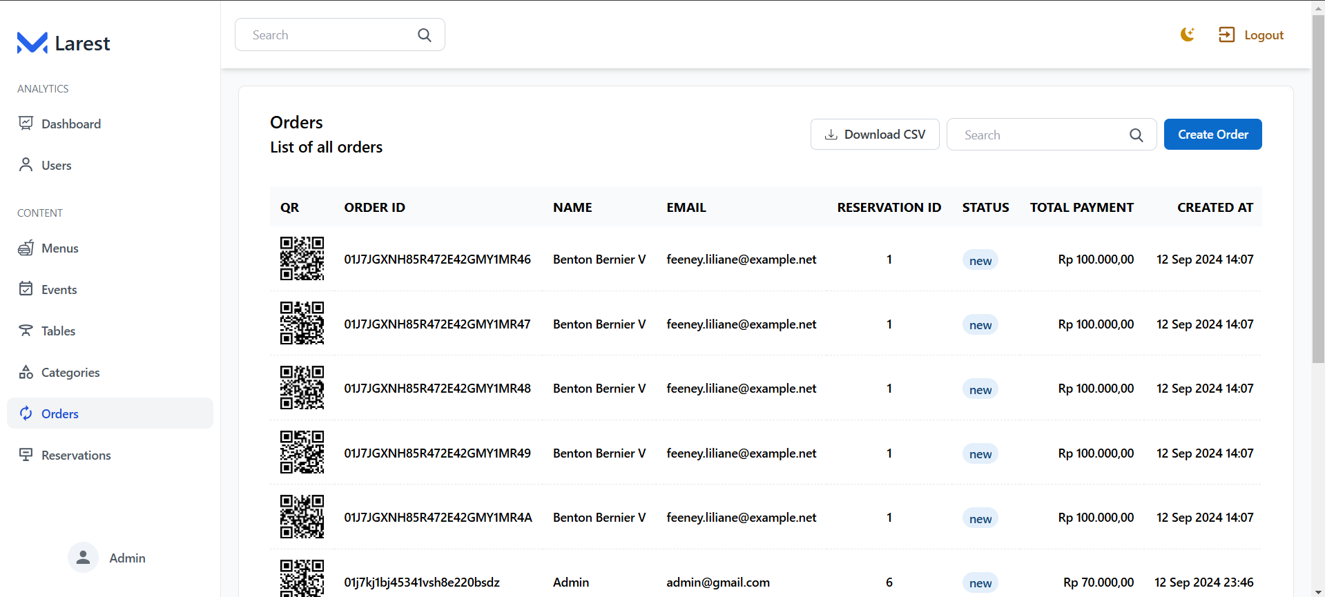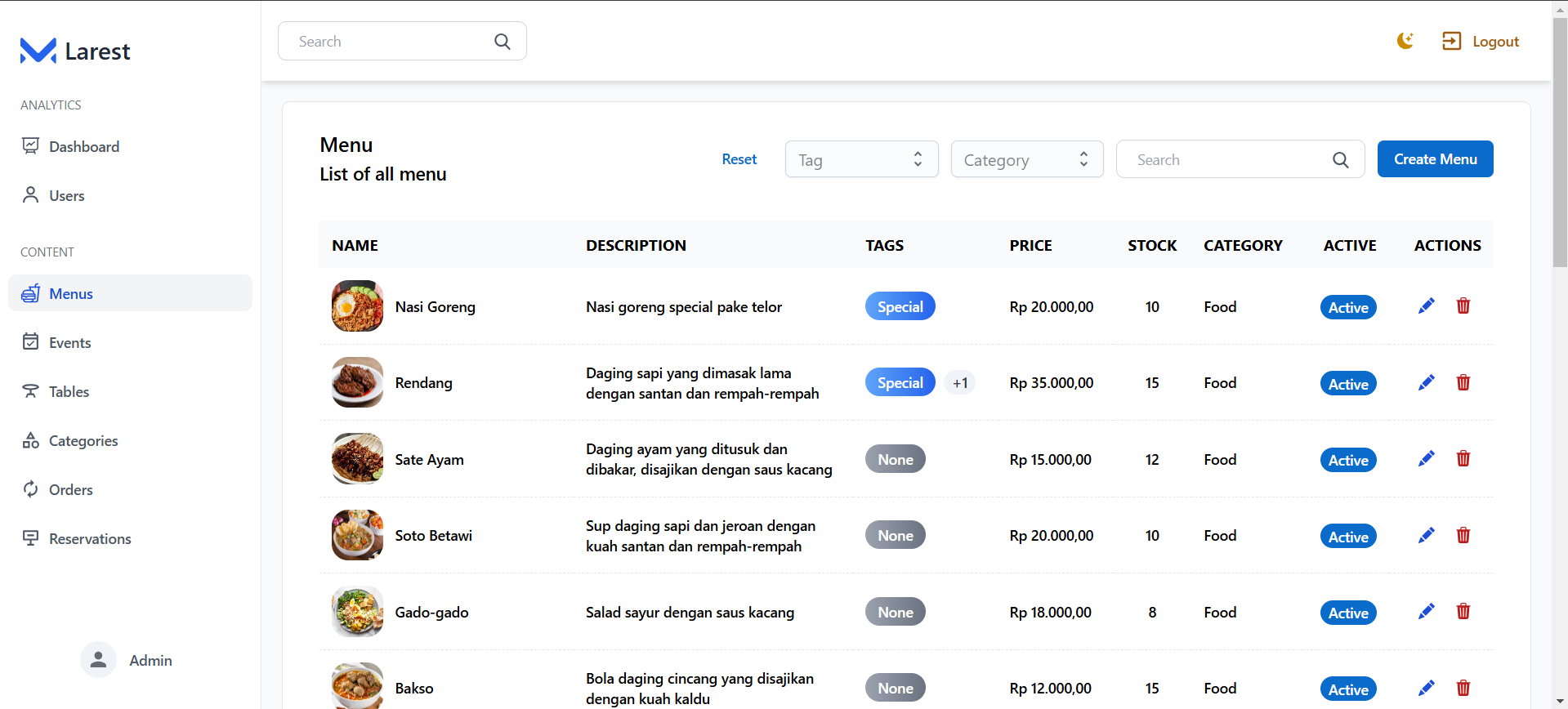 "Larest" is the name I chose for this application (Client version), which aims to digitize a restaurant experience. Through this app, customers can place orders directly, with features like cart, reservation, and online transactions intended to make ordering from home easier and more convenient.